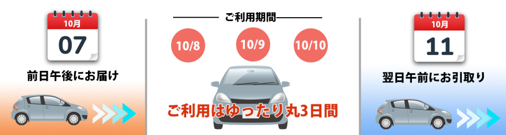 ②レンタル期間の「前日午後にお届け」&「翌日午後に引取り」